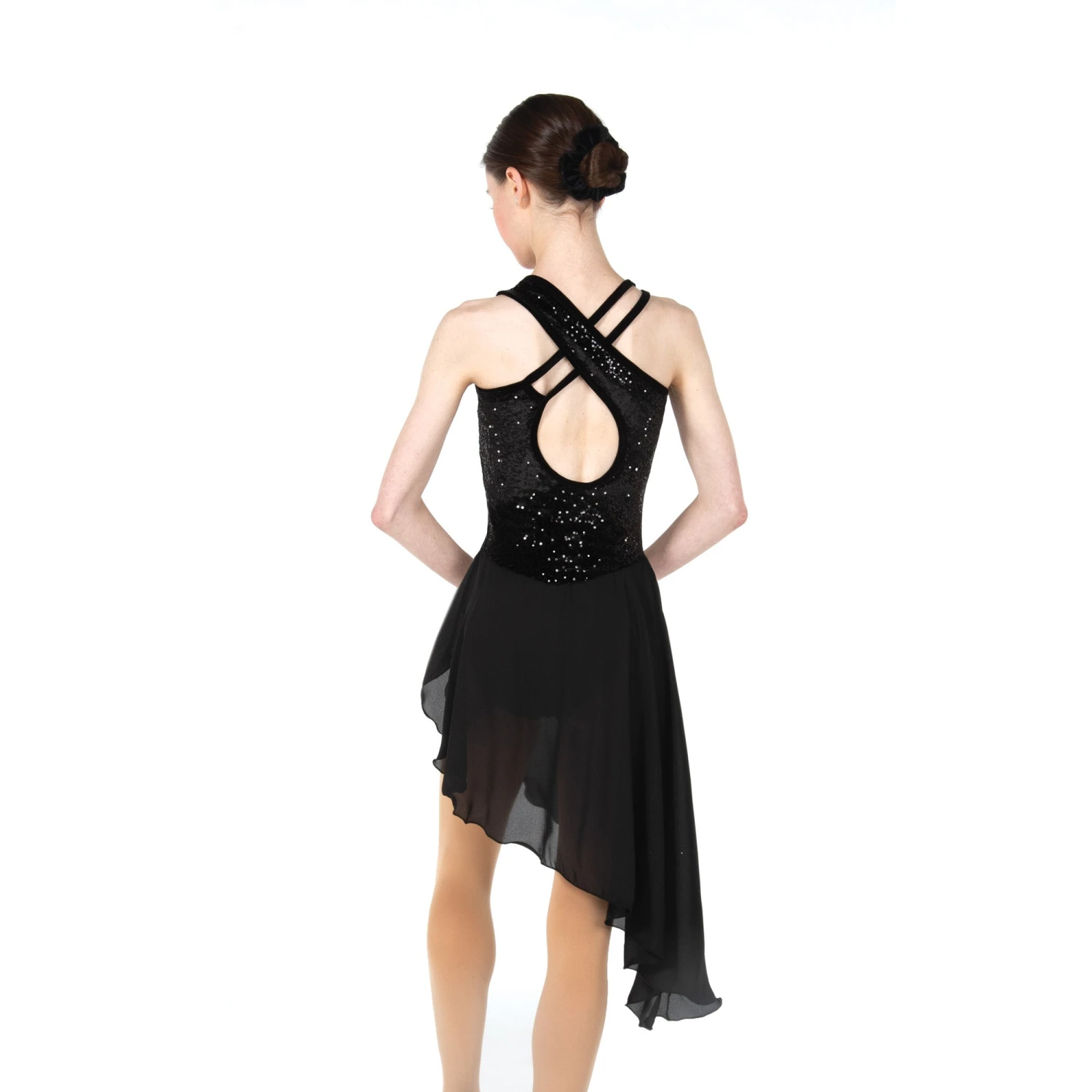 - Full sequin velvet body with a slim stiletto style keyhole at one shoulder and a pair of spaghetti straps at the other