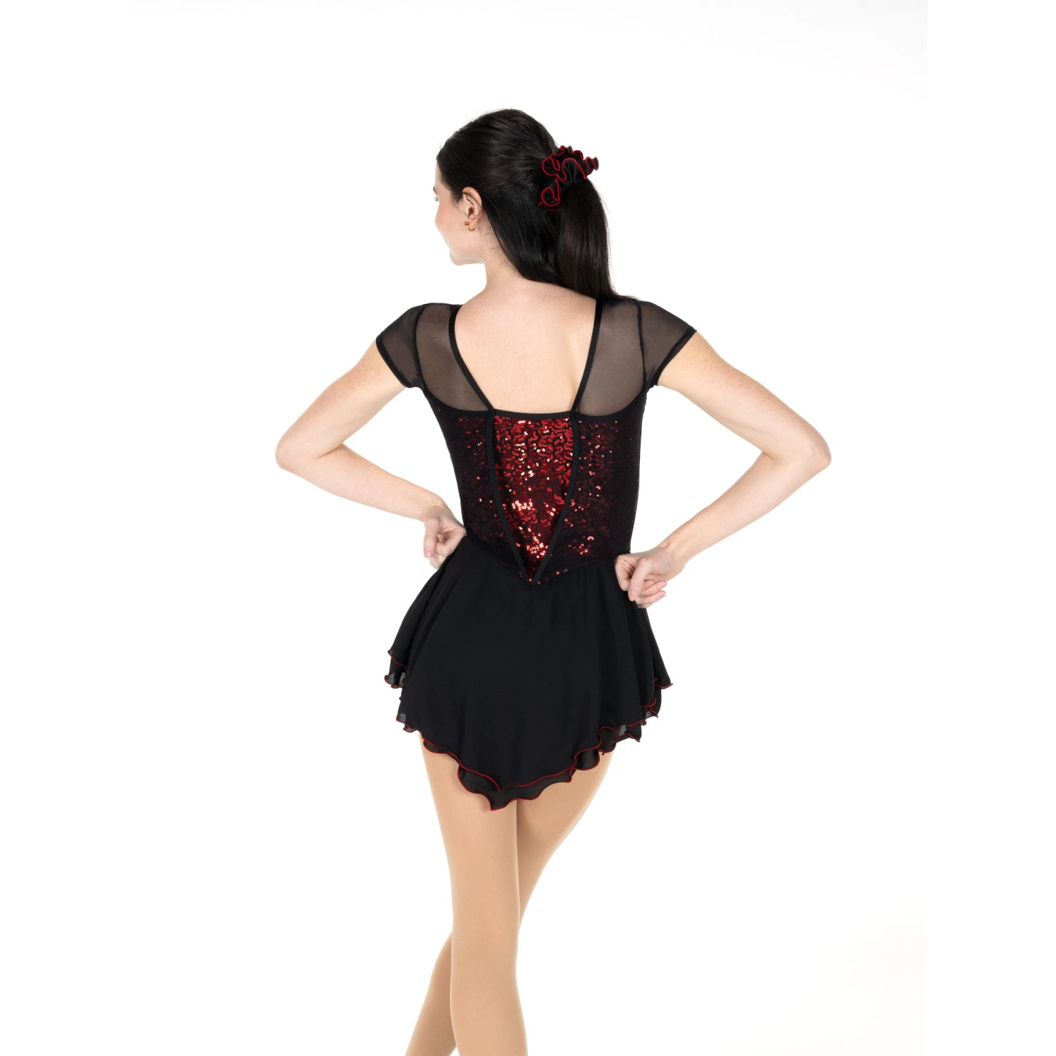 - Double layer georgette skirt is edged in red