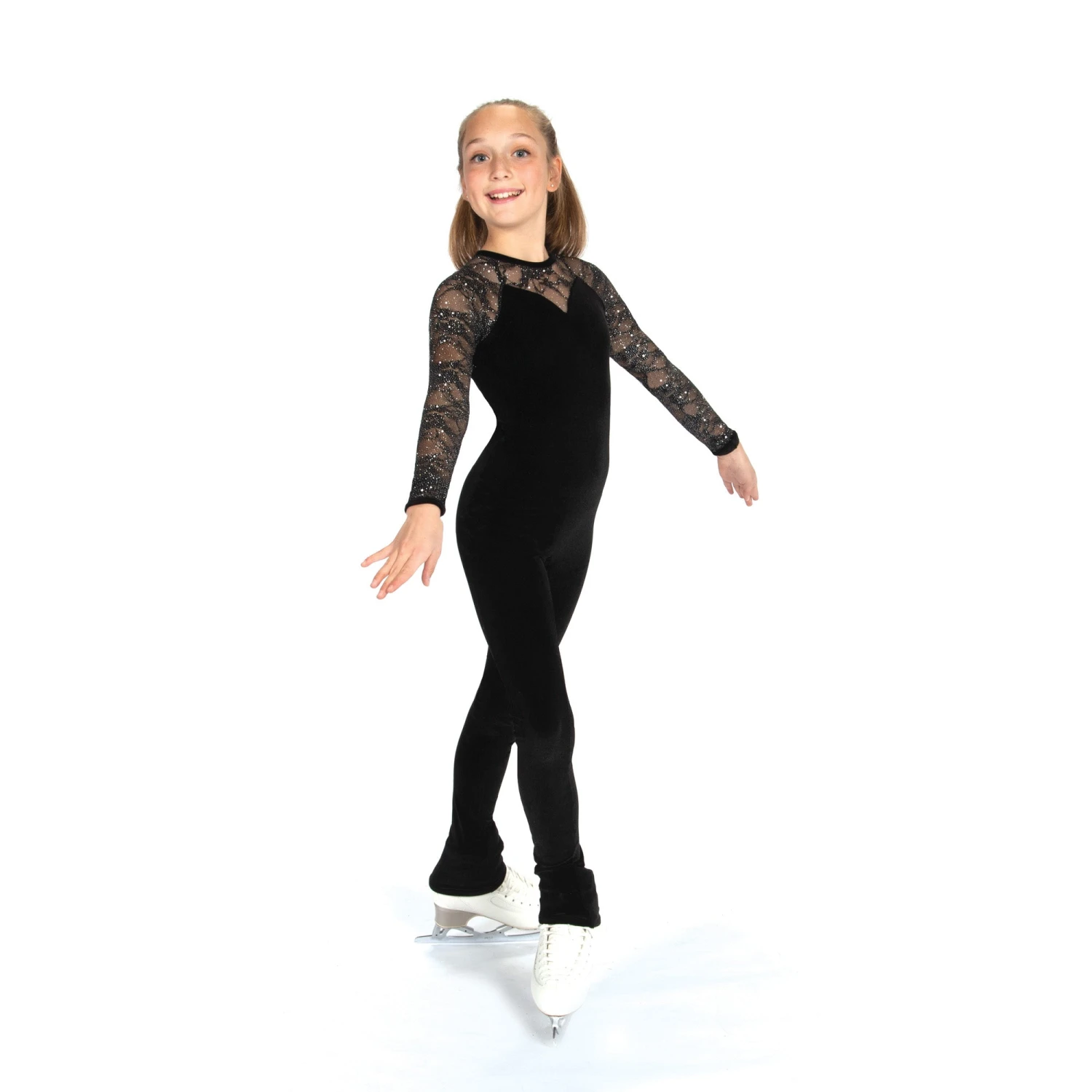 - Black velvet 1-piece with long glitter lace sleeves, a seamless sweetheart front and traditional back keyhole for a timeless and classical look