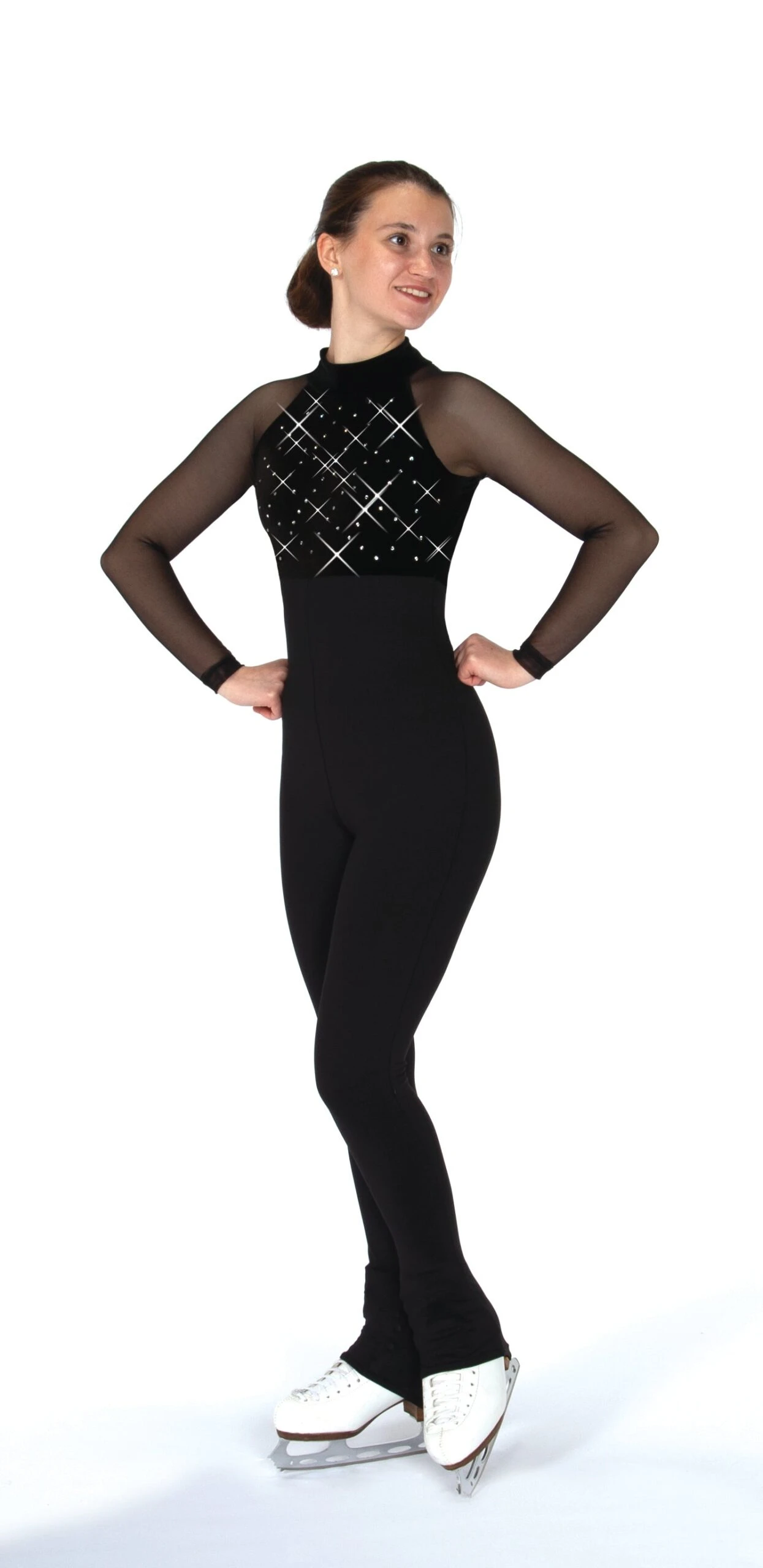 - Long, lean looking black catsuit in supplex with sheer mesh sleeves