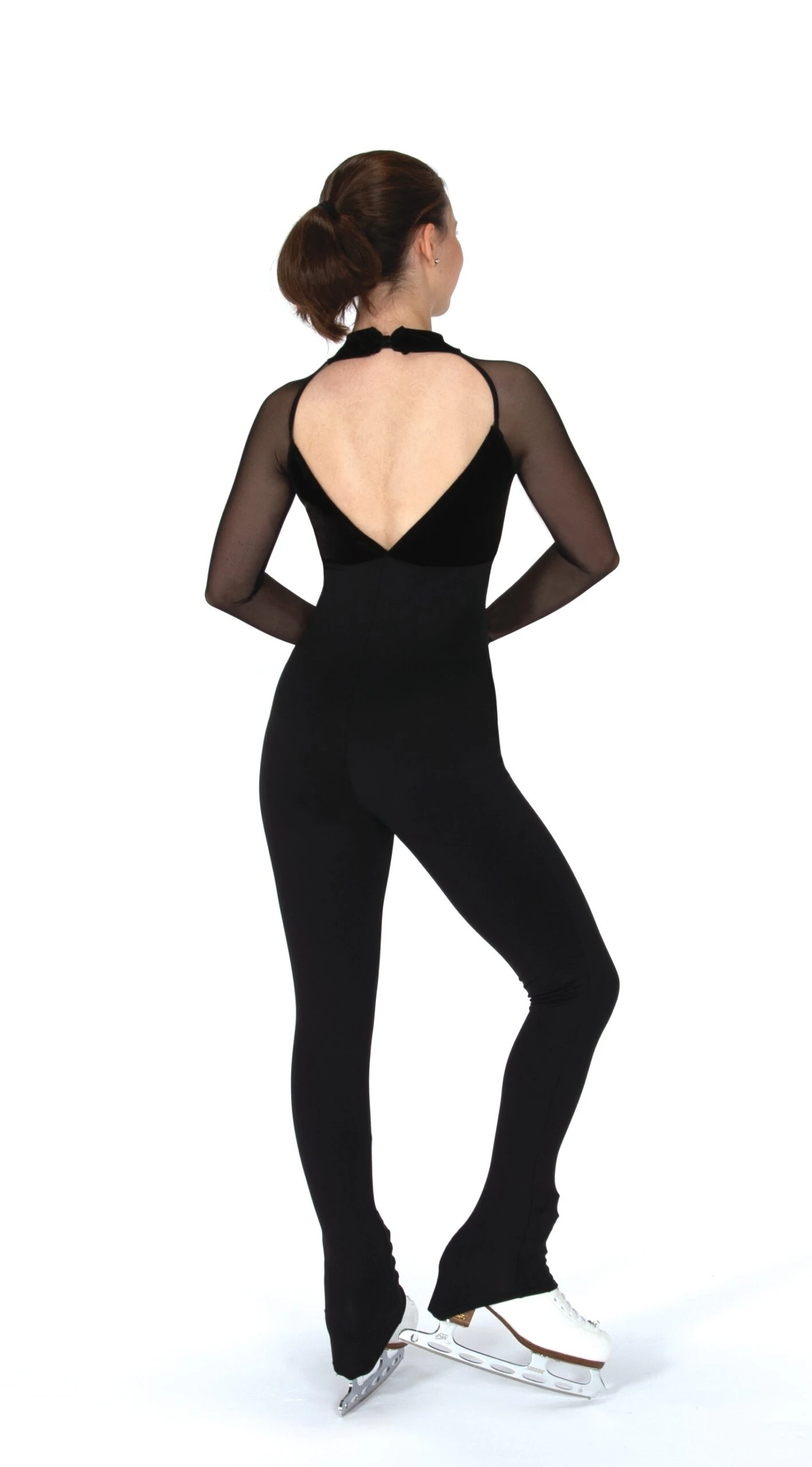 - Long, lean looking black catsuit in supplex with sheer mesh sleeves