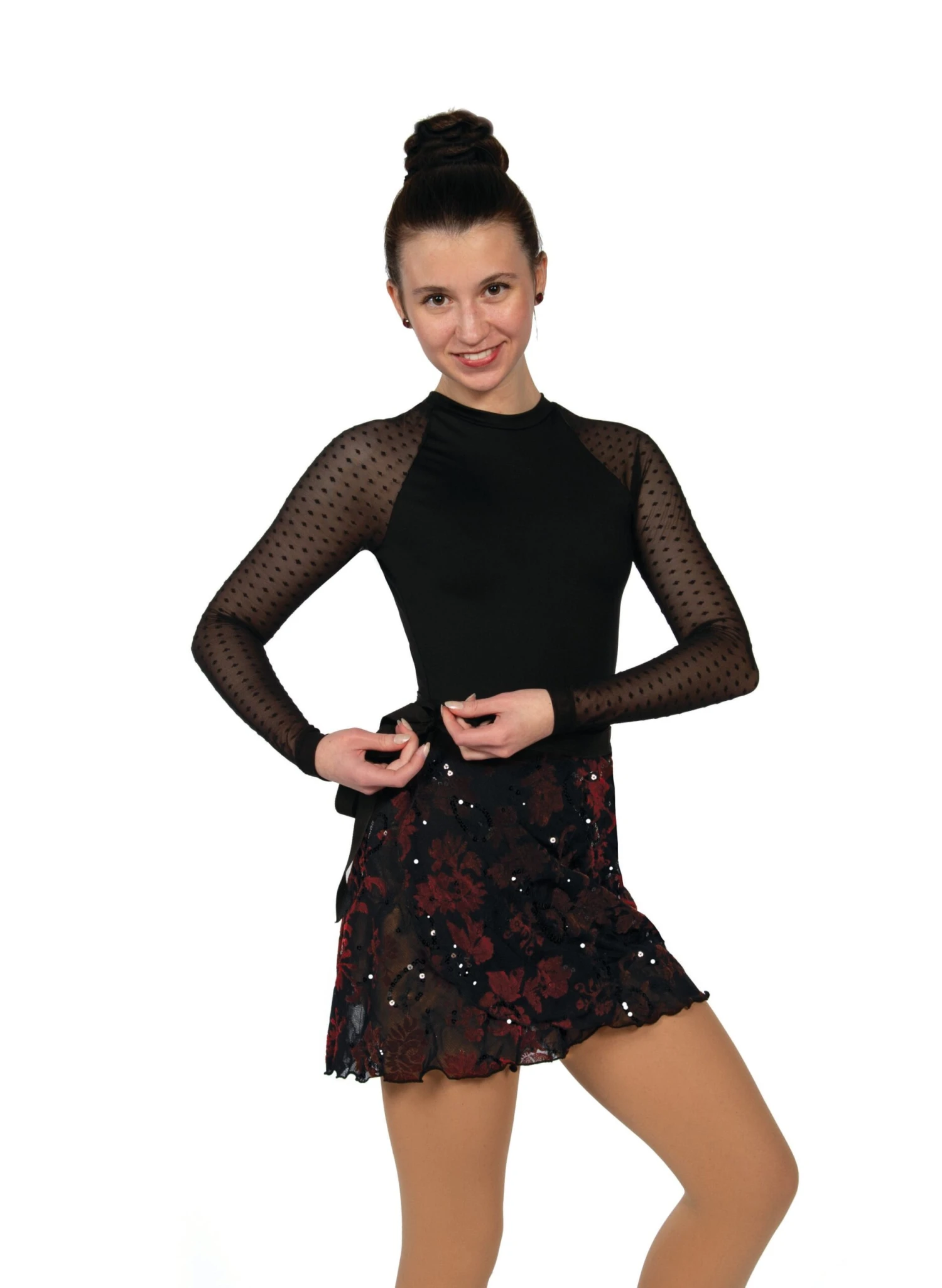 Supplex bodysuit with fabulous mesh dot long sleeves and back keyhole.
