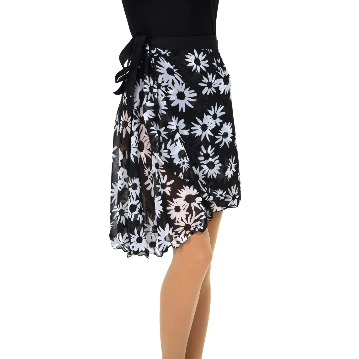 - Dance length chiffon skirt in a pretty black and white floral daisy print