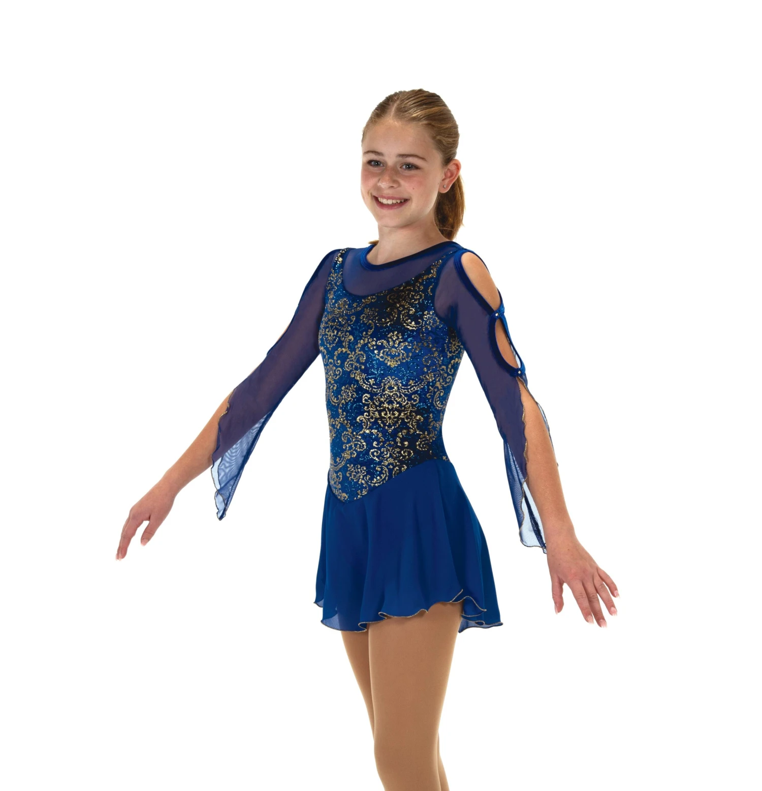 - Beautiful blue velvet dress with swirls of sapphire and gold glitter
