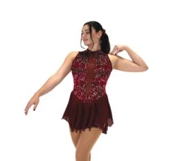 - A wine red velvet dress with a slim scalloped cutout at the front (fully lined in opaque beige lycra) and around the classic back keyhole