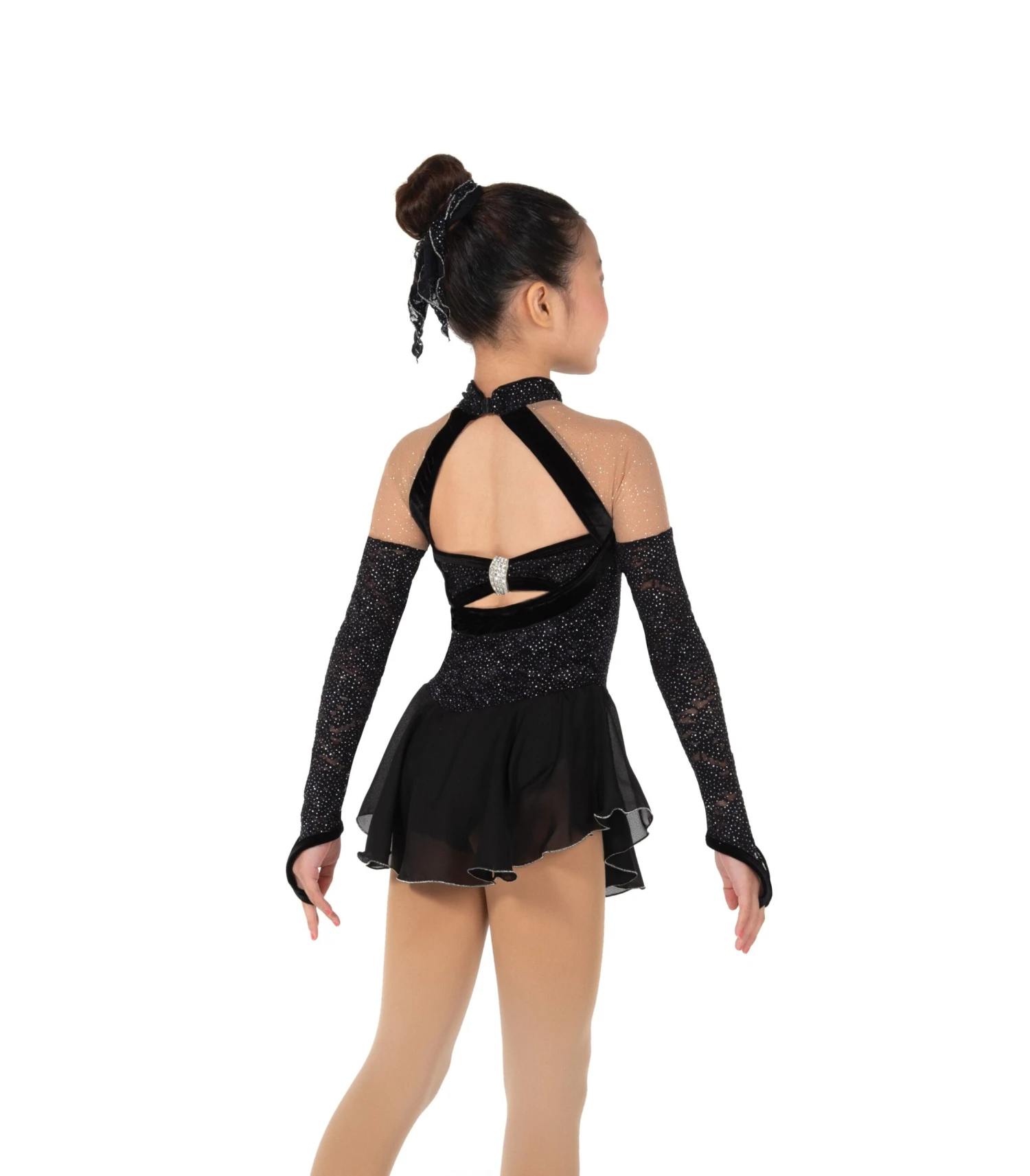 - This elegant dress features a halter style look with long lace finger point sleeves for a polished design