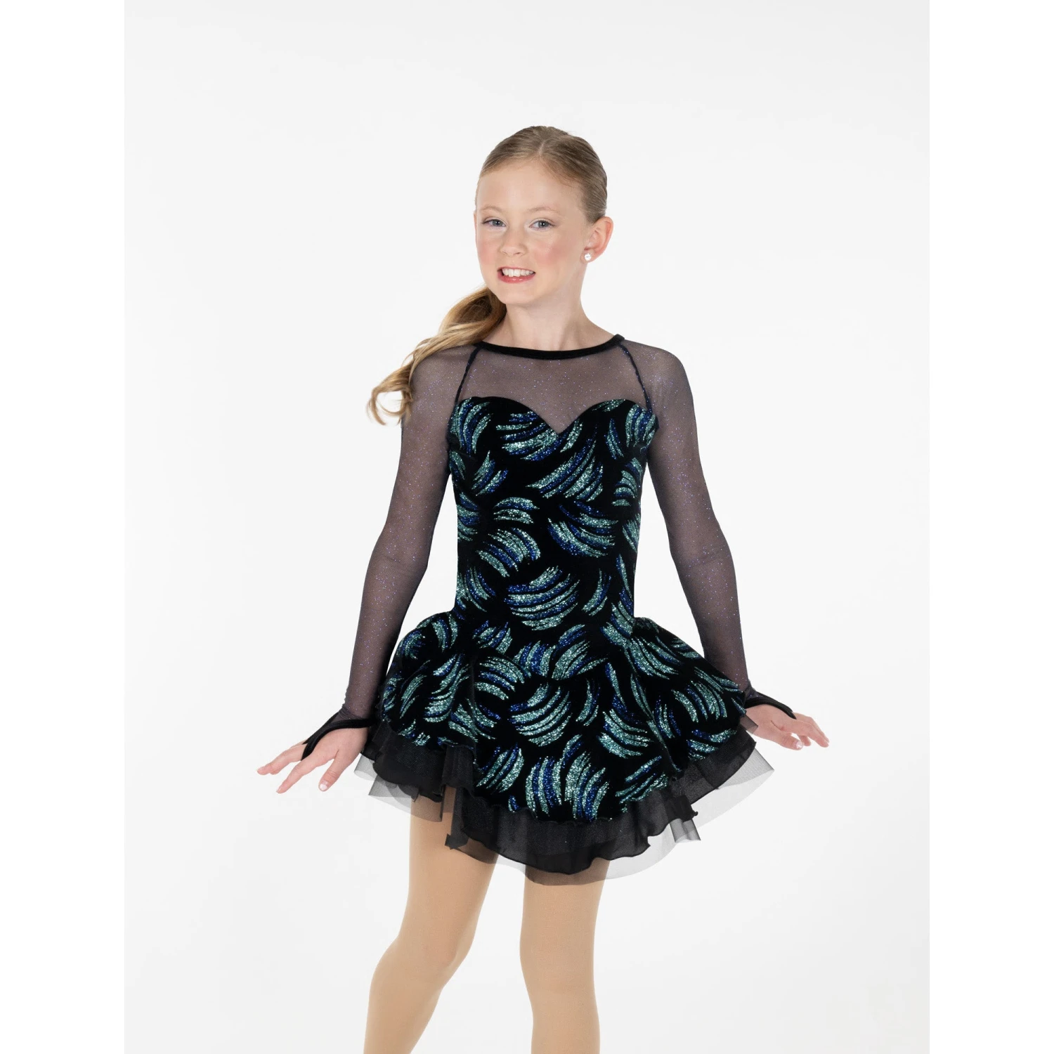 - A layered skirt of glitter velvet over georgette and sheer organdy add a black swan inspiration to this classic look